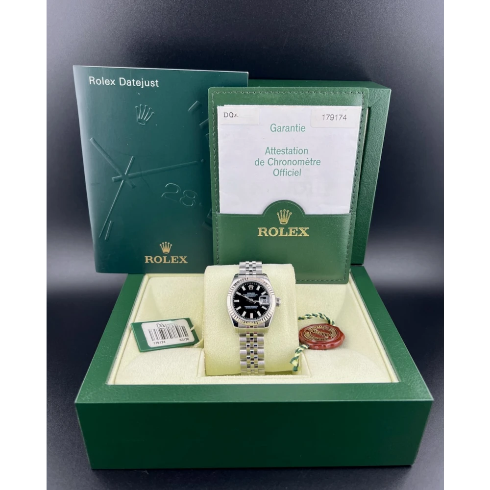 Rolex Datejust 26mm Referenza 179174 Anno 2006 - Seriale D Quadrante Nero Indici Bracciale Jubilee - Ghiera in oro bianco Completo di scatola, libretto e garanzia originali Rolex