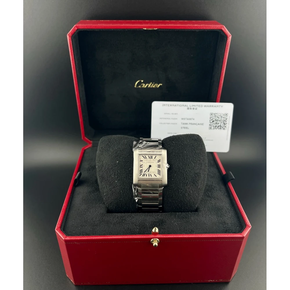 | Cartier Tank Francaise Ref. WSTA0074 - Quadrante bianco - Numeri Romani Neri Cassa 32mm mm in acciaio Movimento al Quarzo Vetro zaffiro - Bracciale in acciaio Pellicole originali su cassa e fondello - Mai Indossato Controllato dal nostro laboratorio |