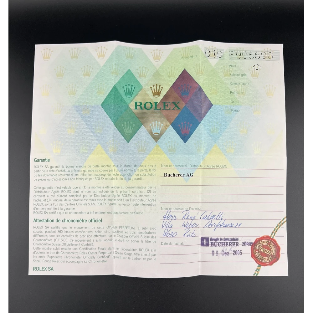 Completo di scatola, libretti, tag e garanzia originale Rolex