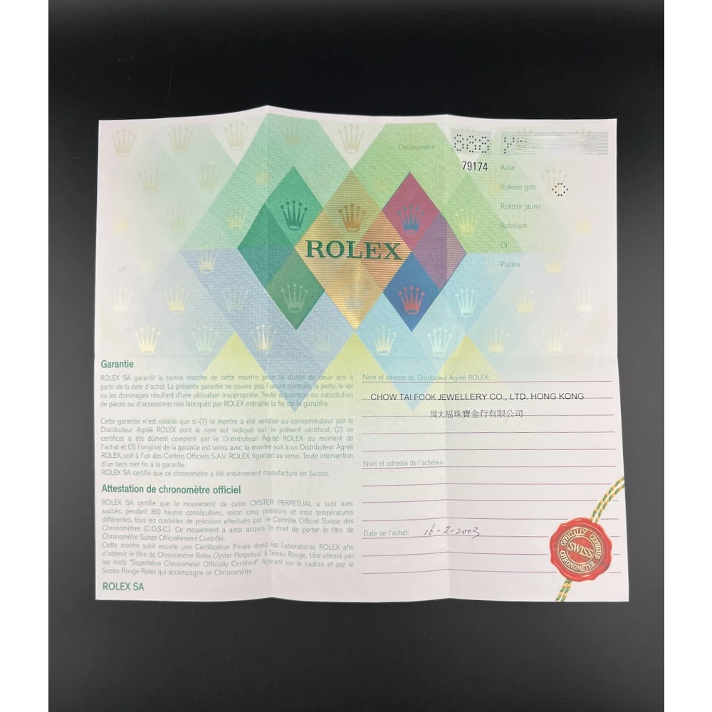 Completo di scatola, tag e garanzia Originali Rolex