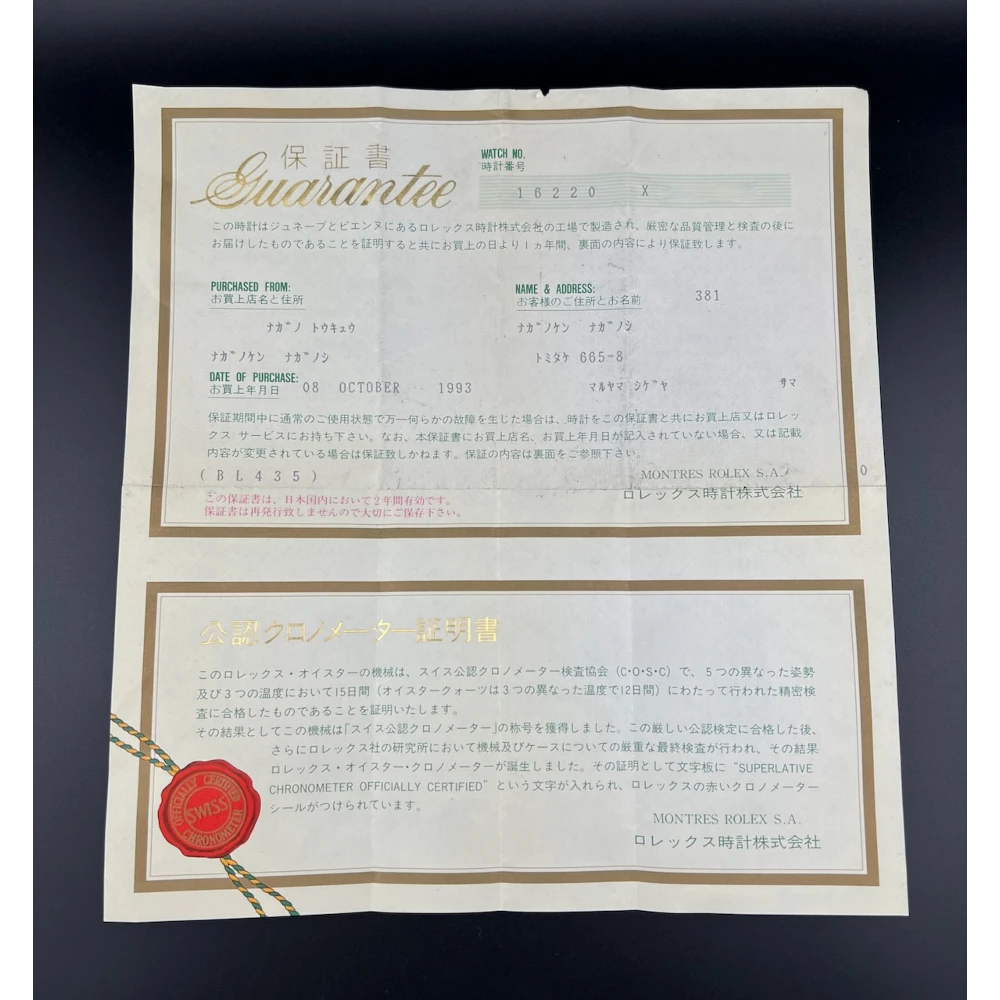 Completo di scatola, libretti, e garanzia Rolex