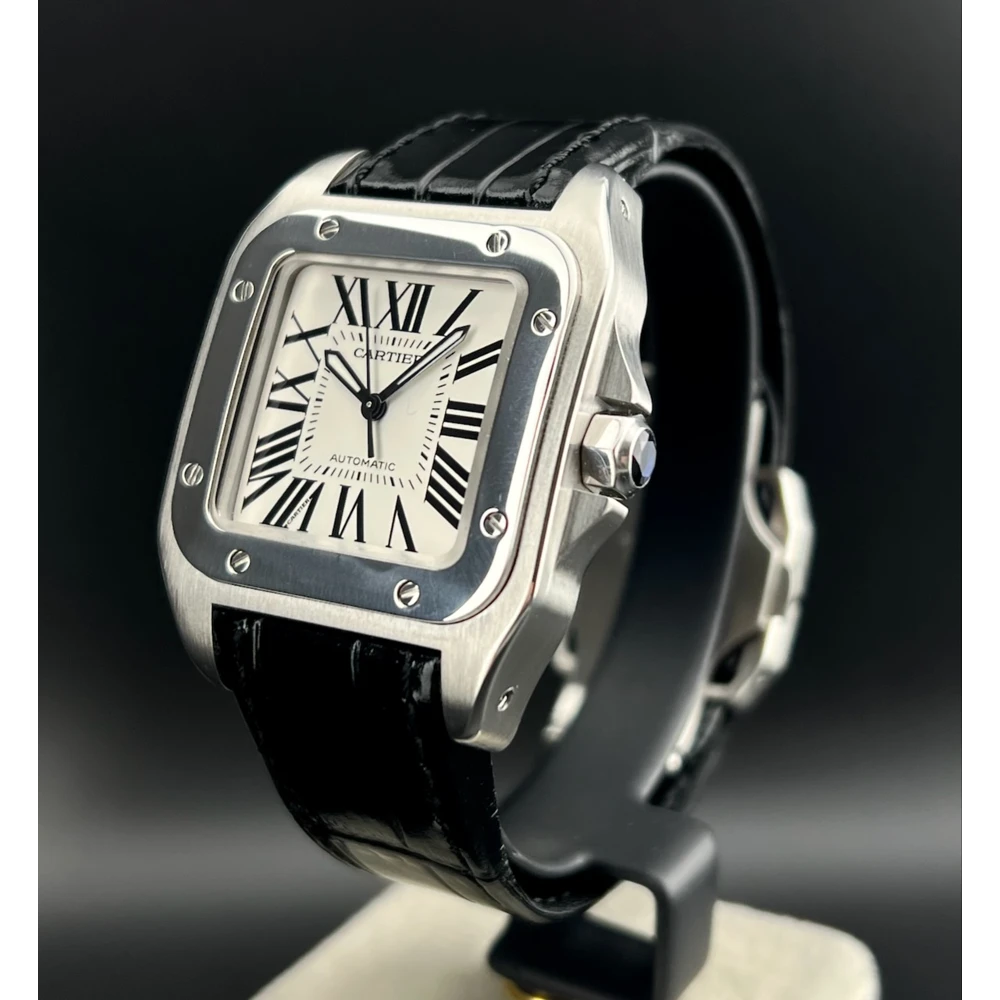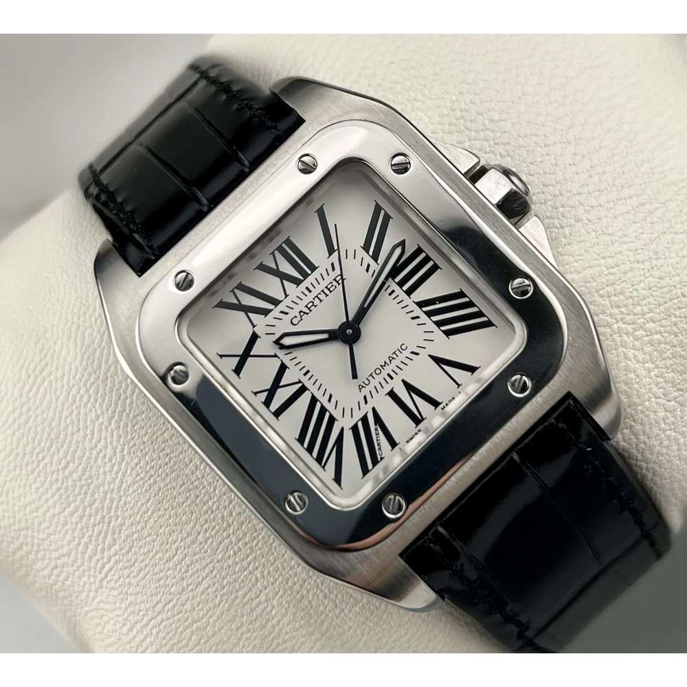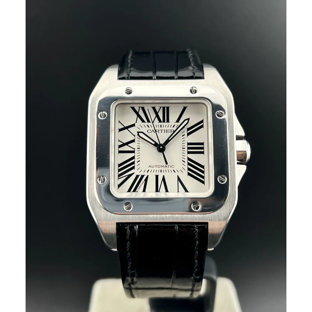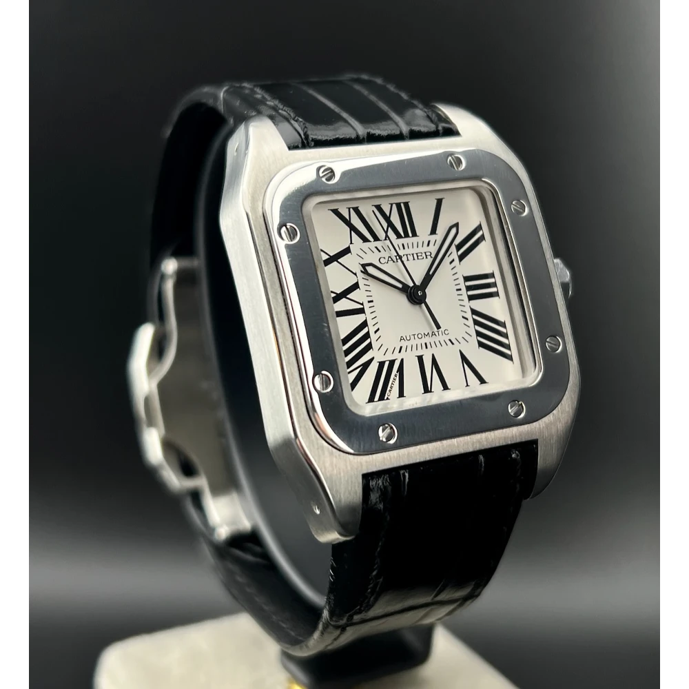 | Cartier Santos 100 Ref. 2878 - W20106X8 Anno 2019 Movimento automatico Quadrante bianco - Numeri Romani Neri Cassa 33 x 44 mm in acciaio Vetro zaffiro - Bracciale in coccodrillo nero Scatola e garanzia originali Cartier Controllato dal nostro laboratorio |