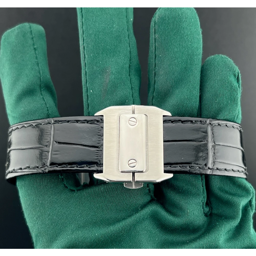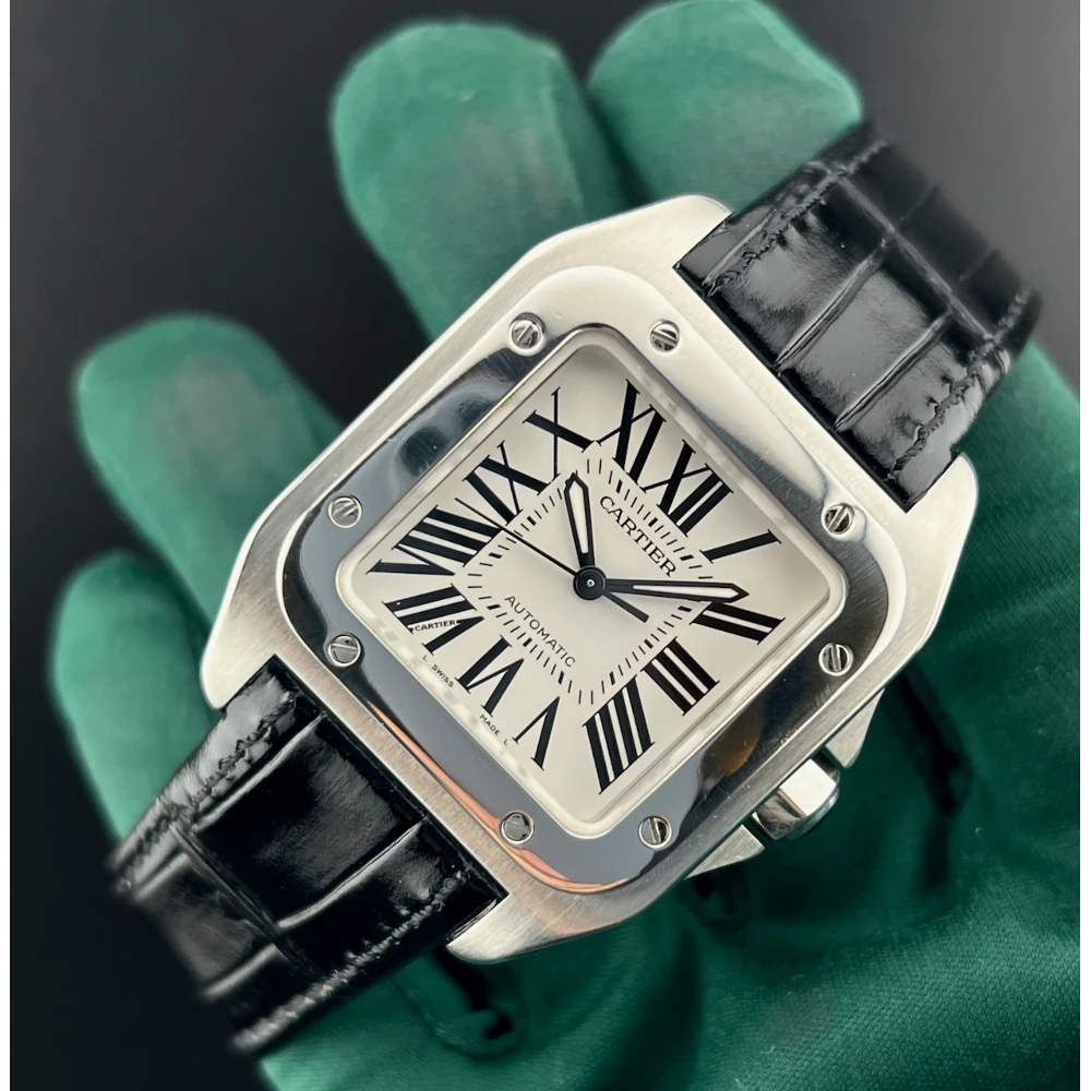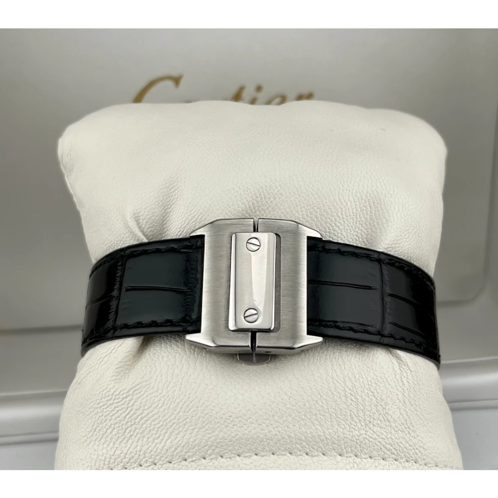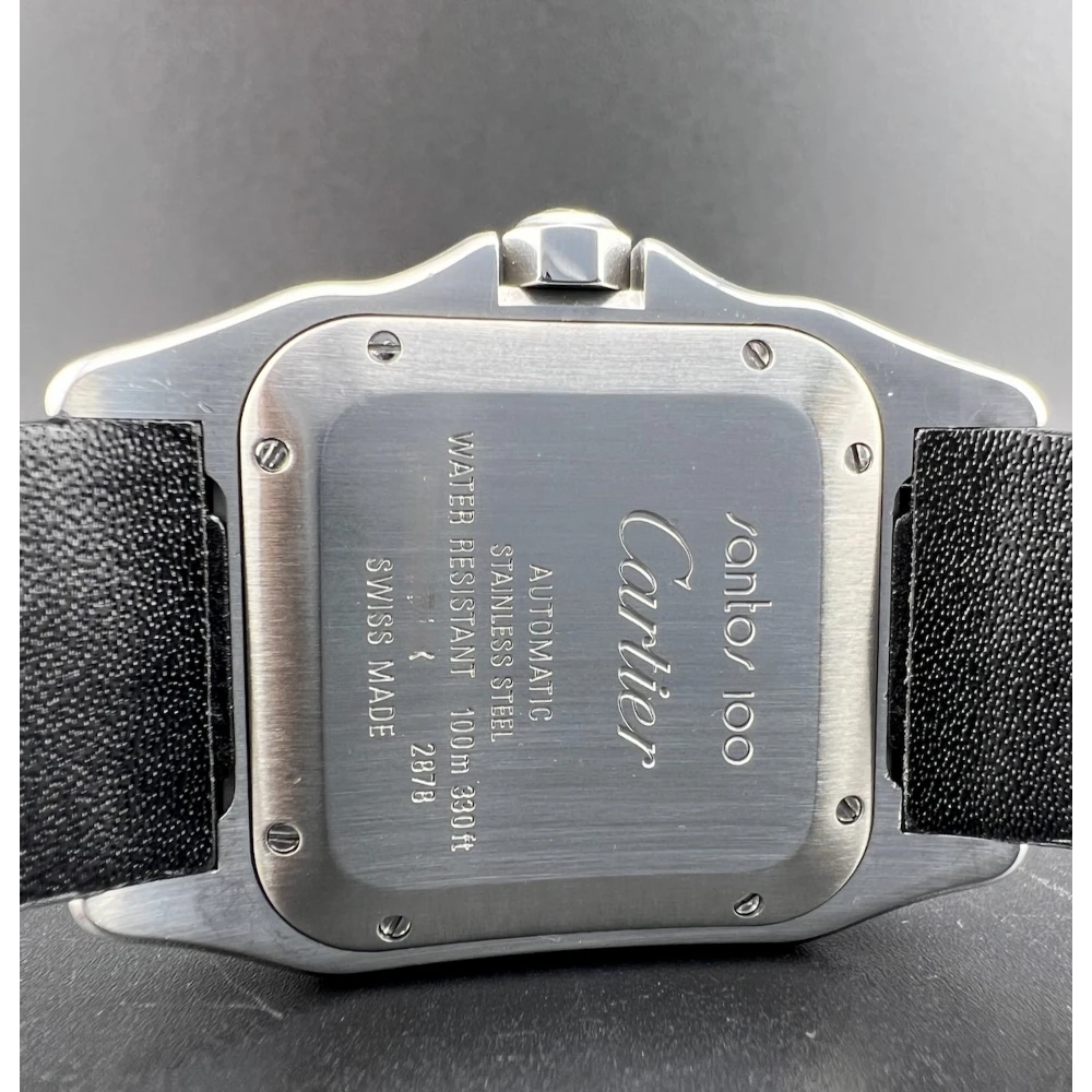 | Cartier Santos 100 Ref. 2878 - W20106X8 Anno 2019 Movimento automatico Quadrante bianco - Numeri Romani Neri Cassa 33 x 44 mm in acciaio Vetro zaffiro - Bracciale in coccodrillo nero Scatola e garanzia originali Cartier Controllato dal nostro laboratorio |
